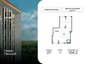 Продаётся коммерческое помещение свободного назначения площадью 104.20 м² в корпусе 1 дома 26 строящегося жилого комплекса комфорт-класса Левел Лесной. Сдача дома 26 запланирована на III квартал 2027 г. Проект расположен в зелёной з...