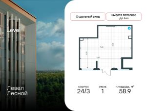 Продаётся коммерческое помещение свободного назначения площадью 58.90 м² в корпусе 1 дома 26 строящегося жилого комплекса комфорт-класса Левел Лесной. Сдача дома 26 запланирована на III квартал 2027 г. Проект расположен в зелёной зо...