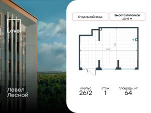 Продаётся коммерческое помещение свободного назначения площадью 64.00 м² в корпусе 1 дома 26 строящегося жилого комплекса комфорт-класса Левел Лесной. Сдача дома 26 запланирована на III квартал 2027 г. Проект расположен в зелёной зо...