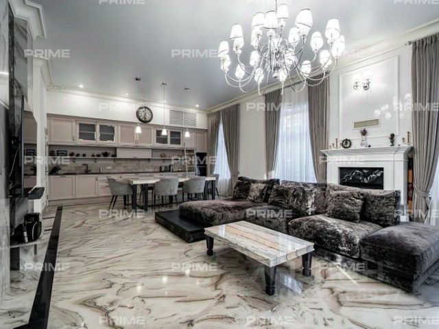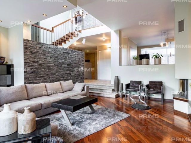 — 1 этаж: прихожая, холл, каминная гостиная, кухня, 2 санузла, прачечная, застеклённая веранда с выходом на участок, отдельный блок для персонала (студия с кухней и санузлом, отдельный вход).