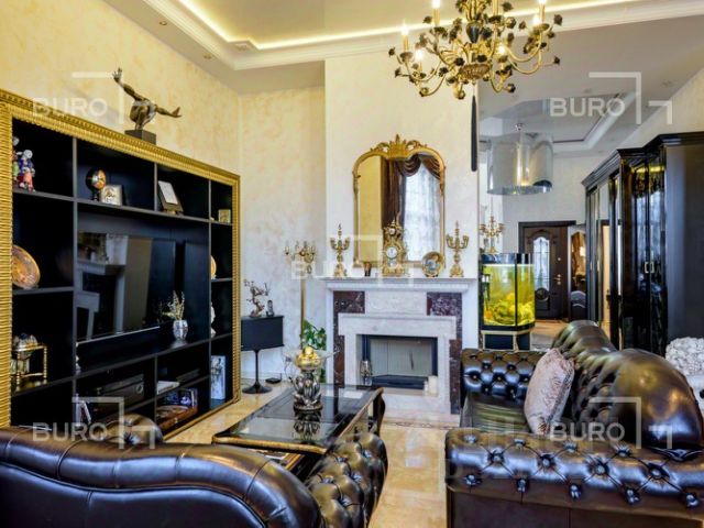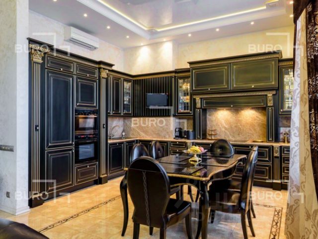 Таунхаус продается с кухонной мебелью и сантехническим оборудованием. Отделка выполнена в стиле ар-деко.