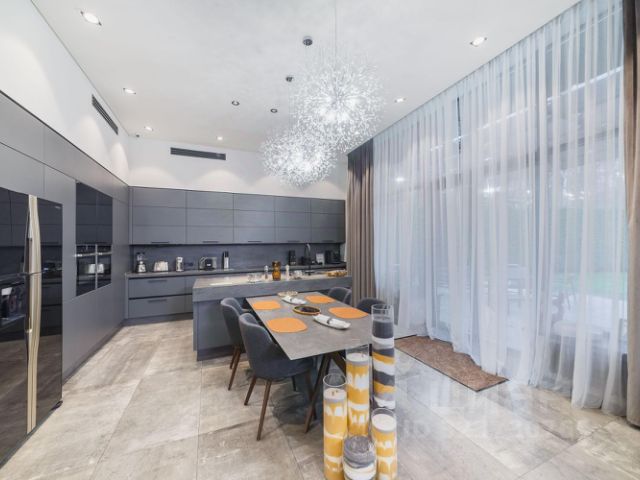 Кухни оборудованы профессиональной кухонной мебелью, которая установлена в ресторанах уровня звезд Мишлен: SieMatic (Германия) и De Manincor (Италия). Бытовая техника Kppersbusch, Miele, B&O. Барные стулья Academia (Италия).