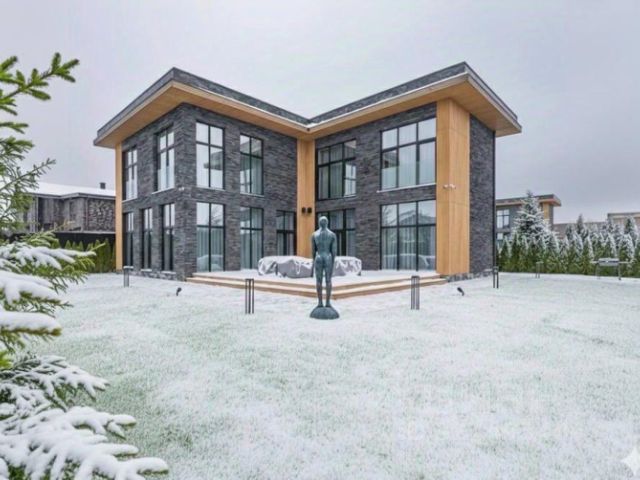 Площадь 499,5 м² распределена на три уровня и предлагает продуманное зонирование для жизни и отдыха. В доме есть лифт, две мастер-спальни с гардеробными и ванными комнатами, две гостевые спальни с собственными санузлами, детская с отдельным санузлом, просторная кухня-гостиная с выходом на открытую террасу, большая гостиная с баром, камином и библиотекой, а также сауна с купелью для полного расслабления.