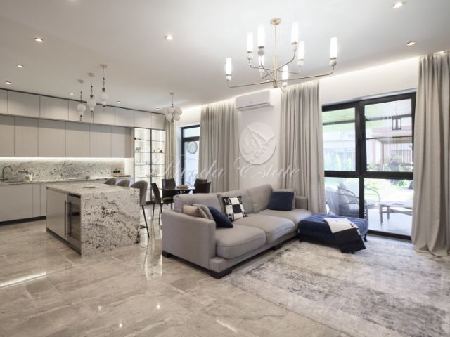 id 9628 Просторная планировка: продуманная архитектура и инженерные решения позволили создать по-настоящему комфортабельное жилое пространство для большой семьи или для приема гостей. Высокие потолки, качественные материалы, панорамное остекление и стильный дизайн интерьера создают ощущение простора и света На первом этаже вас встречает светлая и невероятно просторная гостиная зона, объединенная с современной кухней-столовой. Это сердце дома, где легко собраться всей семьей. Панорамное остекление от пола до потолка стирает границу между интерьером и природой, наполняя пространство светом и открывая прямой выход на собственный благоустроенный ухоженный участок с капельным поливом, готовым газоном, деревьями, зоной для отдыха с грилем Кухня: выполнена по индивидуальному проекту с использованием современных материалов. Встроена вся необходимая техника премиум-брендов: холодильник, духовой шкаф, варочная панель, стильная вытяжка, посудомоечная машина и винный шкаф. Гостиная: лаконичная мебель в стиле современная классика создают атмосферу уюта и безупречного вкуса На первом этаже также расположен удобный санузел с душем, просторная гардеробная, постирочная, бойлерная Второй этаж - это приватная зона отдыха, где расположены 4 спальни, каждая из которых является личным пространством для комфорта и релаксации. Мастер-спальня: настоящая жемчужина этажа. Она включает в себя спальную зону с гардеробной комнатой и собственным lux-санузел с полноразмерной душевой кабиной Еще три спальни подходят как для детей, так и для гостей. Они оформлены в спокойных, нейтральных тонах с качественной мебелью - кровати, шкафы-купе, рабочие столы Второй санузел: просторный совмещенный санузел с современной сантехникой и ванной Дом оснащен по последнему слову техники: система multi-зональная система кондиционирования, высокоскоростной интернет. В отделке использованы только натуральные и современные материалы: натуральный дуб, инженерная доска, керамогранит, декоративная штукатурка