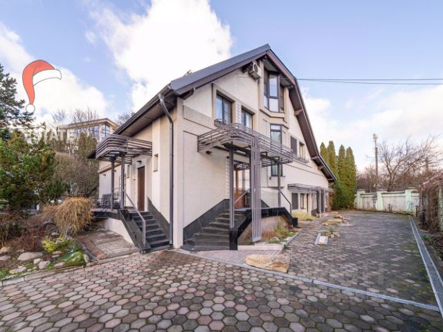 Участок 8 соток правильной формы. Сделан ландшафтный дизайн: уложен газон, посажены плодовые растения и деревья. Установлены автоматические ворота. Перед домом большая площадка для 5-6 автомобилей, вымощенная брусчаткой.