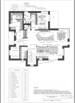 Общие помещения: прихожая (26) с гардеробной (16), холл (25) с гостевым с/у (6), гостиная-столовая (126), парадная кухня (44), техническая кухня (17), гардероб для сезонных вещей (18).