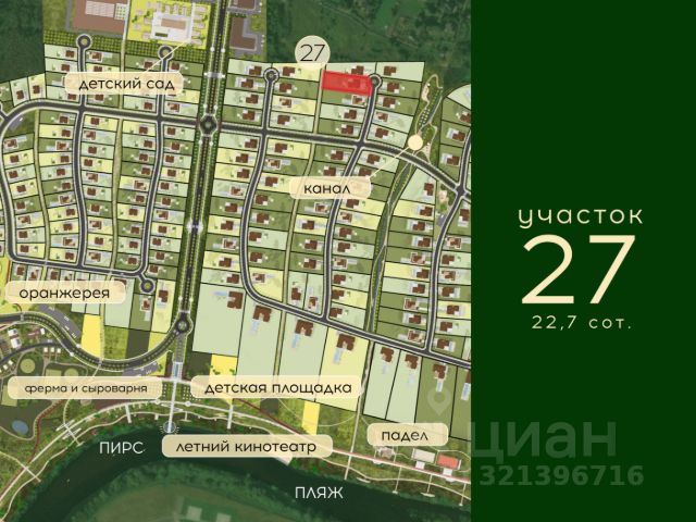 Лот 39743. Участок площадью 22,25 сот. в элитном коттеджном посёлке Crystal Istra.Участок продается без подряда, по периметру огорожен забором в единой стилистической концепции благоустройства общественных зон посёлка.Коттеджный поселок Crystal Istra расположен в 18 км от МКАД по Новорижскому шоссе, на самом берегу реки Истра, и отличается удобной транспортной доступностью благодаря двум выездам — на Новорижское и Ильинское шоссе.На территории посёлка находятся три парка, сосновый лес площадью 18,3 га, пляж и набережная протяжённостью 1,6 км, вдоль которой проходит прогулочная тропа с зонами отдыха и детскими площадками. Общая протяжённость уникальных прогулочных маршрутов составляет более 10 км.В центральной части расположены ресторан и фитнес-клуб с 25-метровым бассейном, доступные только для резидентов посёлка.В северной части сконцентрированы спортивные зоны: падел-корты, теннисный корт, универсальная спортивная площадка для игры в баскетбол, мини-футбол и волейбол, а также зона воркаута, настольный теннис и мини-гольф.Всё необходимое рядом: в зоне 15-минутной доступности расположена вся инфраструктура, необходимая для комфортной и насыщенной жизни.