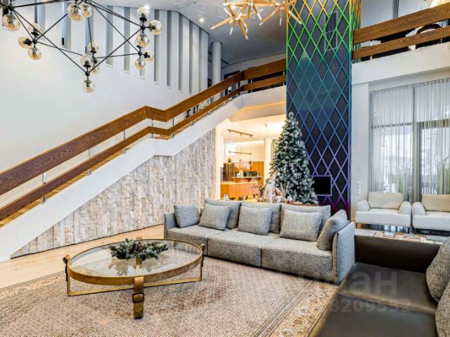 Придомовая территория поражает своей красотой и ухоженностью: среди вывмощенных дорожек возвышаются вечнозеленые ели и сосны, создавая атмосферу приватности в окружении живописного ландшафта. Фасад здания выполнен в классическом стиле с изящной лепниной, колоннами и балюстрадами, что подчеркивает высокий статус объекта.