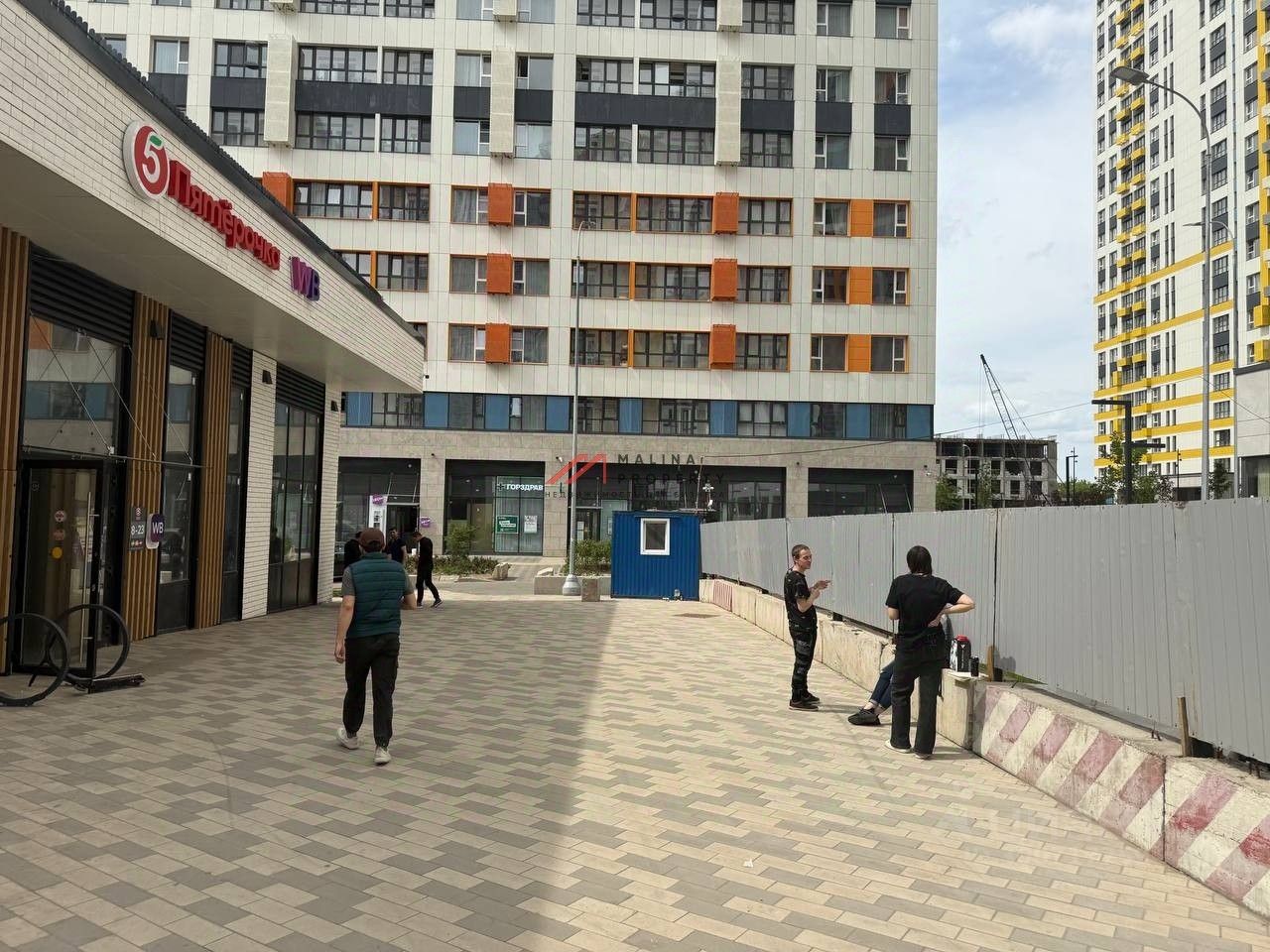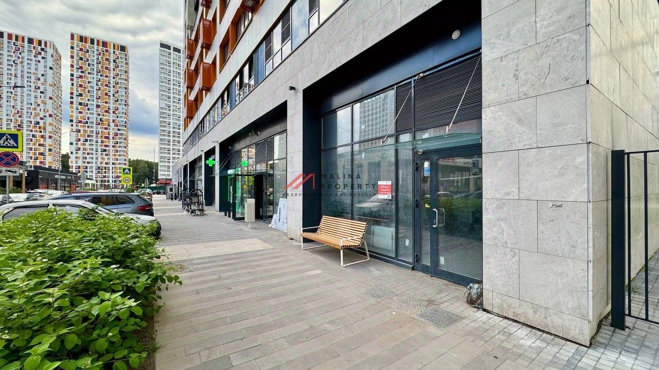 Угловое помещение площадью 62 м2 находится рядом с входом в супермаркет.