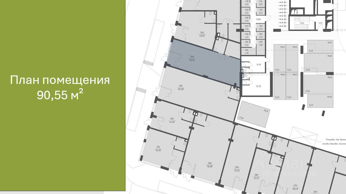Помещение в стилобате напротив действующей торговой галереи и крупным сетевым супермаркетом;