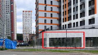 Угловое помещение на въезде в ЖК в прямой видимости от остановки и бизнес-центра, окна-витрины по всей высоте помещения по периметру - крайне высокий рекламный потенциал.
