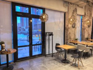 Сдается помещение под любой общепита, 70 кв.м. зал, 30 кв.м. кухня со складом. Панорамные окна, высокие потолки.