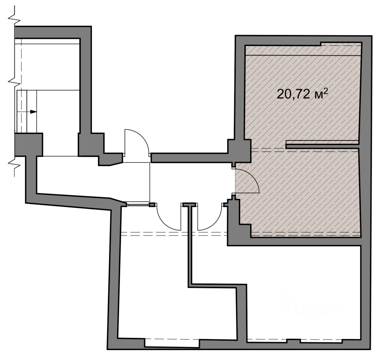 Помещение расположено на цокольном этаже. Вход с ул. Советская расположен на 1 этаже из холла коммерческих помещений 1 этажа.