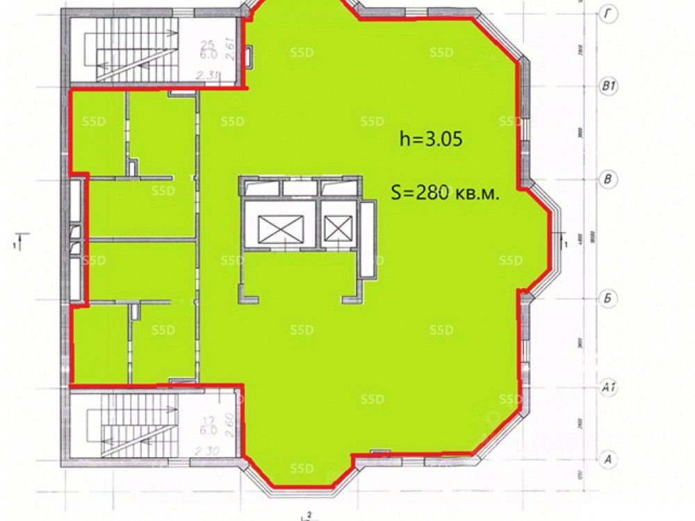 Зона погрузки/разгрузки, 2 входа, 2 запасных выхода, 2 лифта (грузовой и пассажирский).