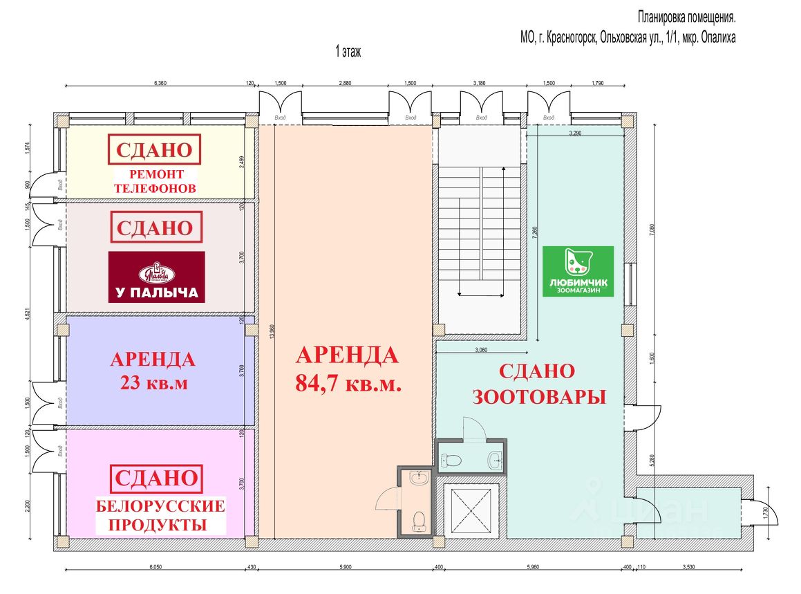 Торговые площади находятся в нескольких метрах от МЦД-2 Опалиха. Самый большой трафик в данном месте. Площадь помещений от 23 до 239 кв. м. (см. планировки). Первая линия, отдельный вход, свободная планировка, витринные окна, высота потолка 3,6 метра (2.5 подвал). Возможность круглосуточной работы под любой вид деятельности. Хорошие рекламные возможности.