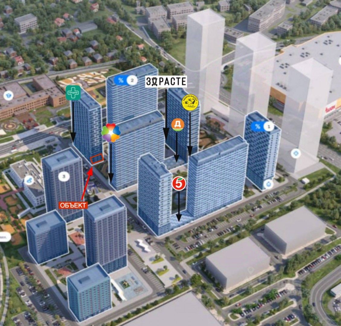 Первая линия домов, угловое помещение с большими витринами выходит на пешеходный бульвар в самом центре жилого массива. Помещение расположено между двумя супермаркетами!