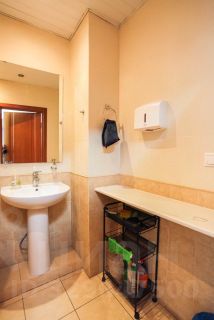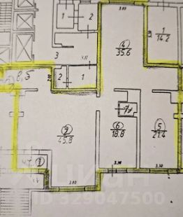 Помещение комфортно разделено на зоны изолированных кабинетов (площади: 18.8 кв м, 21.4 кв м, 35.6 кв м, 45.8 кв м), входной группы, технического помещения и зоны кухни. 3 мокрых точки: 2 санузла и кухня. Окна выходят на две стороны света.