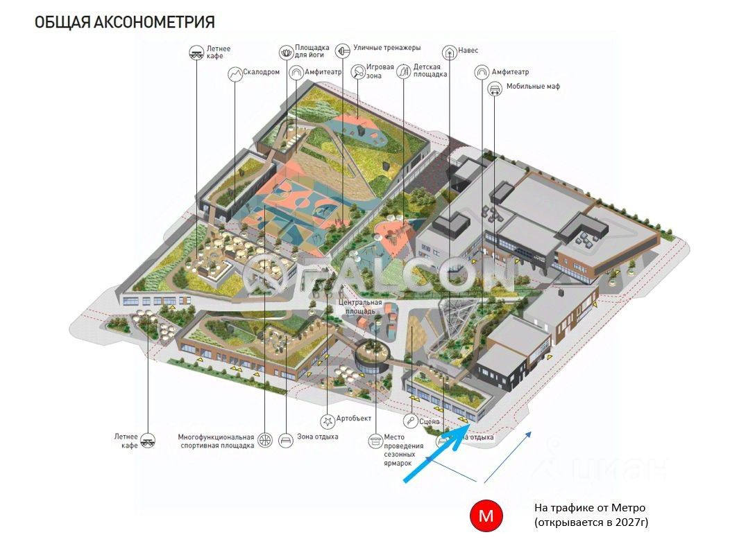 Угловое помещение - первое в общественном центре на пути от метро (2027г)