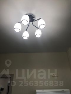 Люстра в комнате с пультом.
