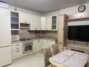 Квартира с дизайнерским ремонтом, оборудована всей необходимой мебелью в комнате и на кухне. В вашем распоряжении современная техника: холодильник, телевизор, посудомоечная и стиральная машины. Санузел совмещенный, с душевой кабиной. Очень солнечная уютная квартира.