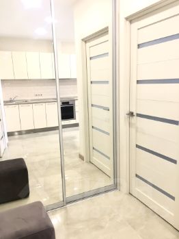 Спланирована: объединенная зона кухни-столовой-гостиной, большая спальня со своей гардеробной, ванная комната, гардероб при входе в квартиру. В гостиной выполнено панорамное остекление с роскошным видом на реку, Дом Правительства МО, окрестности Москвы. Квартира укомплектована всей необходимой техникой фирмы BOSCH и мебелью. В зоне кухни-столовой-гостиной, коридора и ванной комнаты - теплый пол, керамогранит. Полы - высокопрочный немецкий ламинат. В квартире заменены все коммуникации, отопление REHAU, точечный свет, ТВ/интернет.