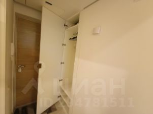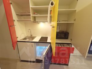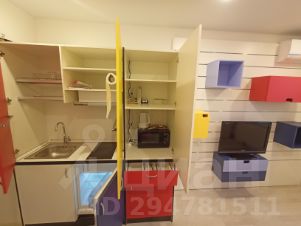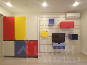 Квартира дизайнерским ремонтом от застройщика. Комната поделена на две зоны кухня-гостиная. В квартире есть вся необходимая мебель и бытовая техника: кухонный гарнитур, мини холодильник, варочная панель, столик, стулья, стиральная машина, диван-кровать раскладной 1,500* 1,800 , телевизор, кондиционер, встроенный шкаф в прихожей, шкаф с полками для одежды, утюг, сушилка для белья.