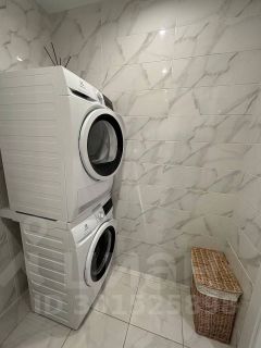 В основном мебель сделана по индивидуальному заказу. В спальне имеется гардеробная, кровать с ортопедическим матрасом Аскона и кондиционер. В ванной установлены стиральная и сушительная машины, а также новая сантехника и датчики утечки воды. В кухне-гостиной имеется посудомоечная машина, встроенная микроволновая печь, духовка, холодильник. В раковине встроен фильтр для очистки воды и измельчитель остатков пищи.