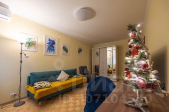В гостиной: диван-кровать 140х200, кресло-кровать, платяной шкаф, комод, туалетный столик с зеркалом, телевизор 43' (300+ каналов, KION), гладильная доска, утюг, кондиционер.