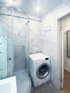 В квартире имеется: кровать двуспальная (на фотографиях ее нет), стол письменный, стул на колесиках, стулья для кухни, стол кухонный, стол стеклянный узкий столовые принадлежности (вилки, ложки, тарелки и тд), чайник, посудомоечная машина (встроенная), кран под питьевую воду, стиральная машина, электрическая сушилка и гигиенический душ.