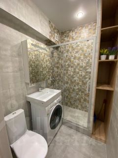 Квартира полностью укомплектована. В комнате стоит диван с ортопедическим матрасом от Орматек. Есть рабочее место. Санузел совмещенный, с душевой кабиной. В ванной пол с подогревом.
