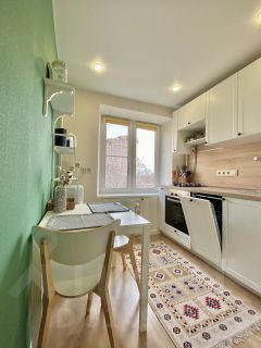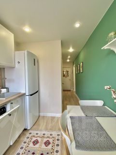 Сдается на долгий срок очень уютная квартира со стильным современным ремонтом. В квартире имеется вся необходимая для жизни мебель (двуспальная кровать, раскладной диван, вместительный шкаф и т.д.) и техника (холодильник, стиральная и посудомоечная машины, кондиционер, телевизор, СВЧ-печь, чайник, пылесос).