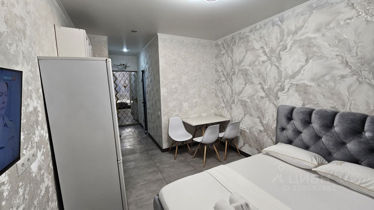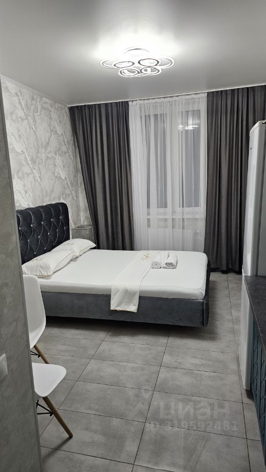 Студия на 18 этаже с современным ремонтом и удобным расположением. Просторная комната оборудована двуспальной кроватью и телевизором. Кухня оснащена необходимой техникой: холодильник, плита, микроволновая печь и стиральная машина. Ванная комната с душевой кабиной и стильным оформлением.Бесконтактное заселение, залог 2000 рублей. Размещение возможно с детьми, но без животных. Курение запрещено. В квартире предоставлены средства гигиены. Из окон открывается вид на улицу. Парковка доступна в здании, и с улицы.