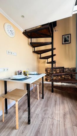 Студия полностью оборудована для комфортного проживания: телевизор, бесплатный Wi-Fi, стиральная машина, утюг, фен, варочная панель, чайник и микроволновка. Есть штопор и бокалы. Регулярная уборка профессиональной химией и дезинфекция от насекомых, а также смена белья на чистое и свежее проводятся перед каждым заездом.