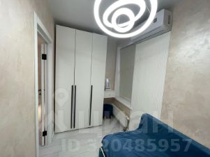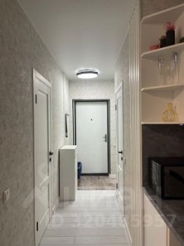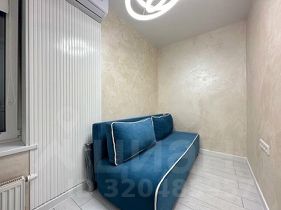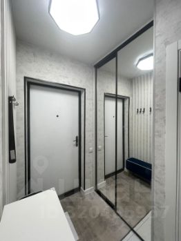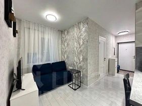 Из мебели: раскладной диван, трехстворчатый шкаф в потолок, зеркальный встроенный шкаф, два пуфа, навесная тумба, обувница, шкаф под TV.
