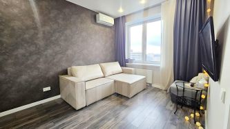 Квартира с дизайнерским ремонтом и полностью готова к комфортному проживанию. Оснащена современной техникой: кондиционер, холодильник, посудомоечная машина, телевизор и стиральная машина, водонагреватель, видеодомофон, теплые полы. Санузел совмещённый, есть ванна и тропический душ. Из окон открывается вид на улицу, и город.