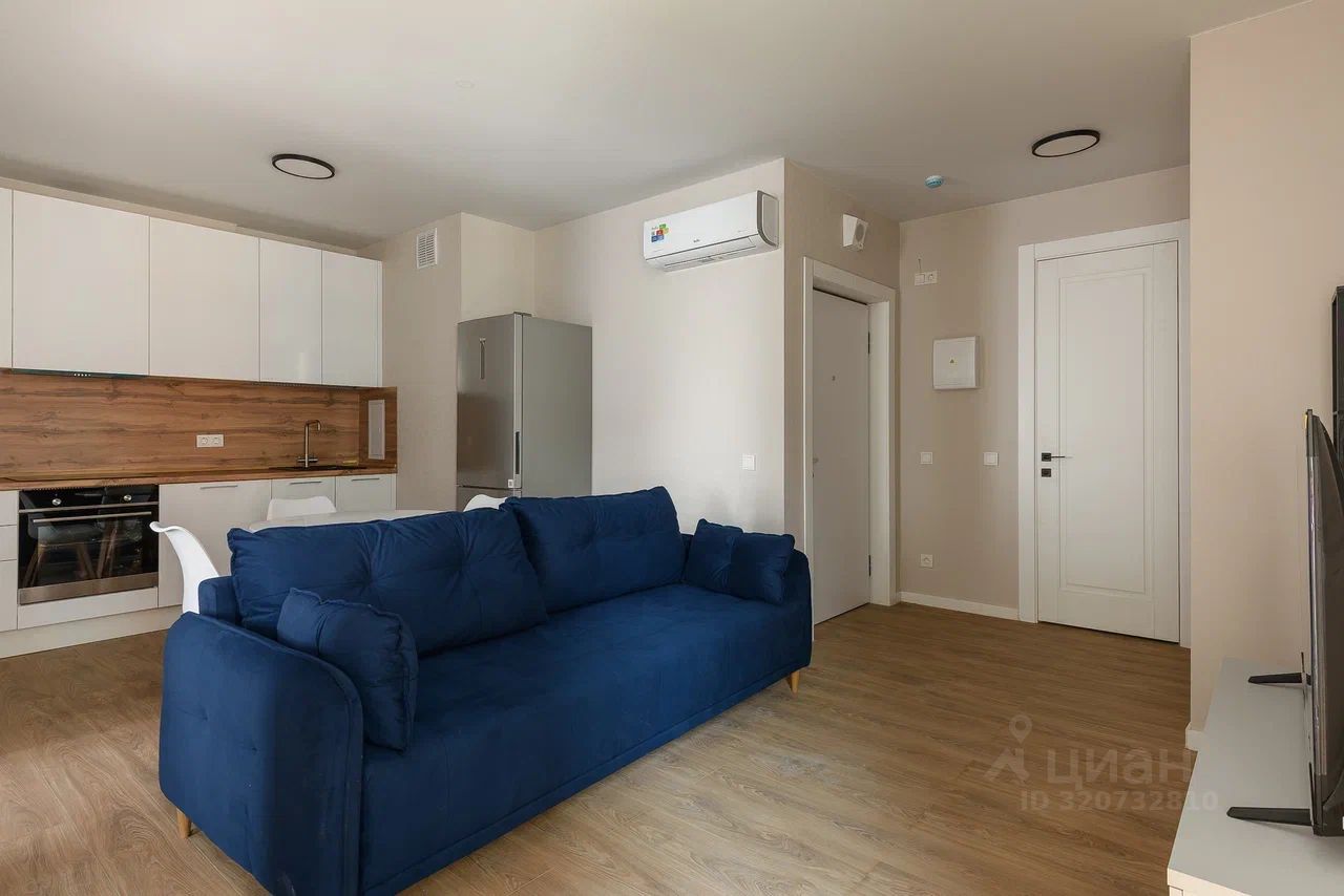 - Полностью оснащён всей необходимой мебелью и техникой: комплект мебели, ТВ 50 дюймов, стильная кухня с посудомоечной машиной, духовым шкафом, варочной панелью, холодильником, вытяжкой, стиральной машиной.