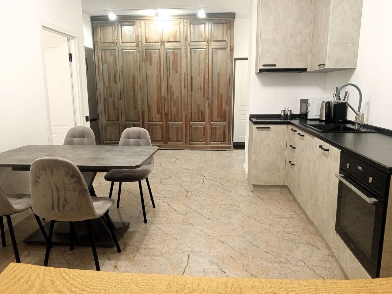 Дополнительно предусмотрены: высокоскоростной Интернет, телевизор, диван-кровать, обеденный стол со стульями и мебель для хранения вещей, кондиционер для поддержания оптимального микроклимата, утюг, гладильная доска, сушка и пылесос для удобства уборки.