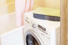 — Стиральная машина, утюг, фен, гладильная доска, сушилка, средства для уборки, пакеты для мусора, пылесос.
