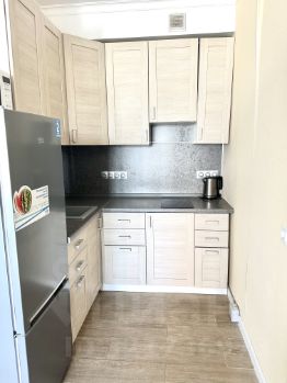 Студия с евроремонтом, что делает её светлой и современной. В квартире есть вся необходимая мебель на кухне и в комнате, поэтому можно сразу заехать и жить. Кухонная зона занимает 5 кв. м, оснащена холодильником и стиральной машиной. Санузел совмещенный, в ванной комнате есть ванна. Окна выходят как на улицу, так и во двор, поэтому здесь всегда тихо и уютно.