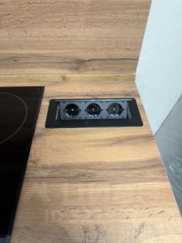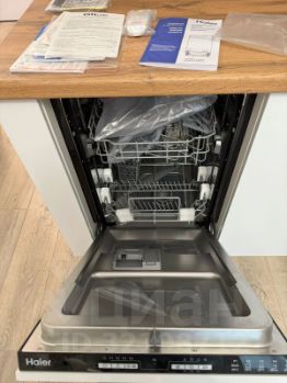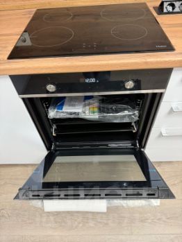 Новая техника: ТВ 50 дюймов, посудомоечная машина, духовой шкаф, варочная панель, холодильник, вытяжка, стиральная машина.