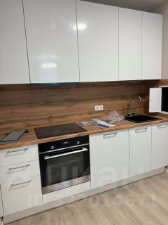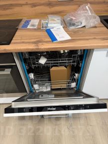 Новая техника: ТВ 50 дюймов, посудомоечная машина, духовой шкаф, варочная панель, холодильник, вытяжка, стиральная машина.