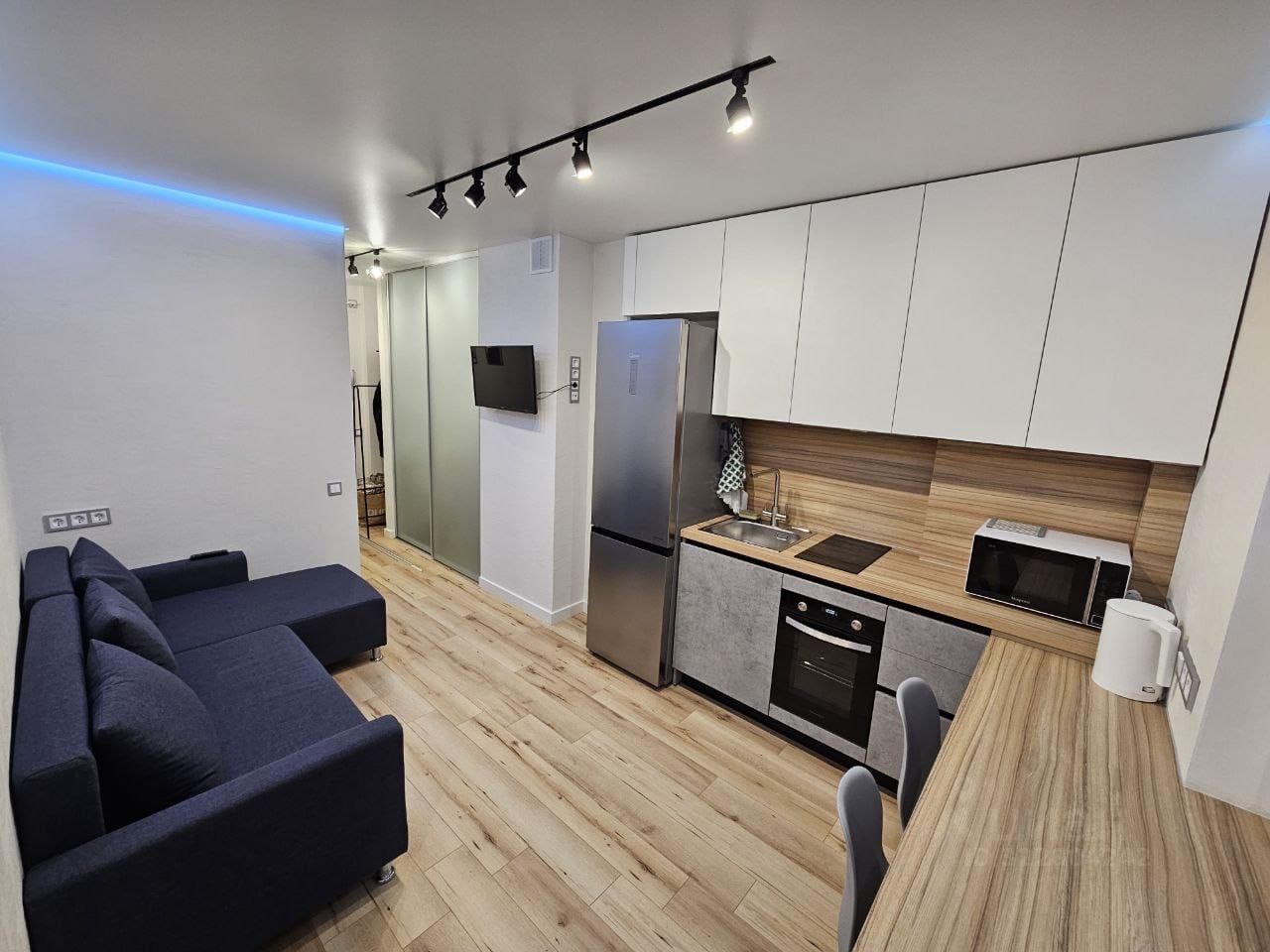 Квартира площадью 28 кв. м расположена на 15-м этаже 30-этажного здания. Высокие потолки 2,7 метра придают пространству дополнительный объем.