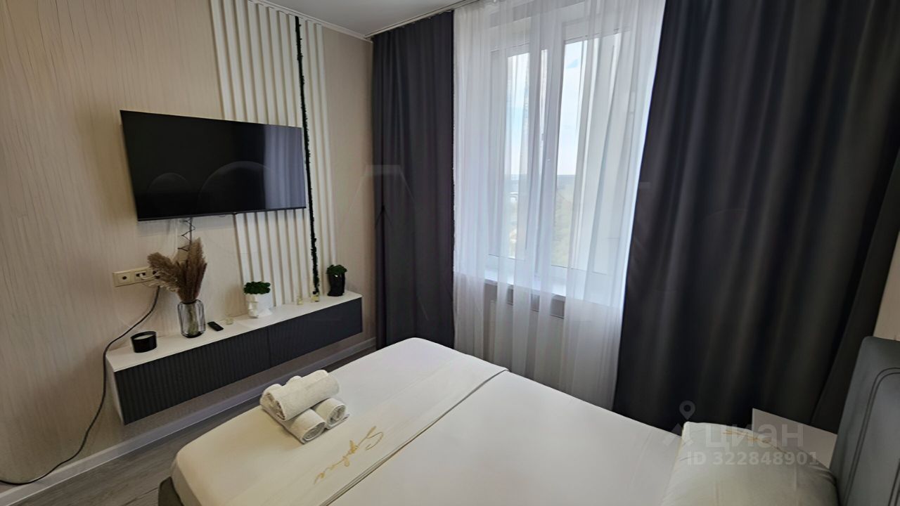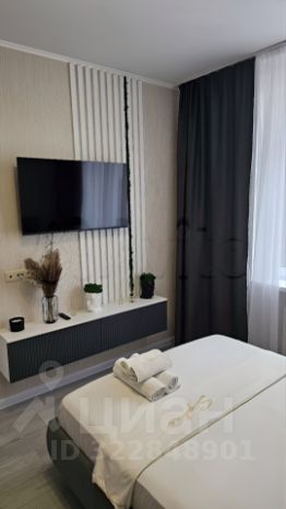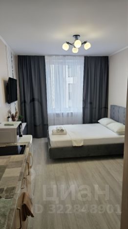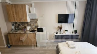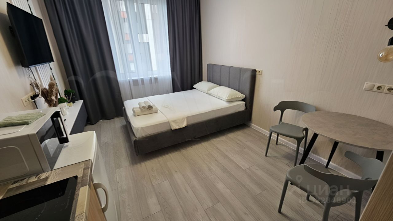 Студия на 22 этаже с современным ремонтом и удобным расположением. Просторная комната оборудована двуспальной кроватью и телевизором. Кухня оснащена необходимой техникой: холодильник, плита, микроволновая печь и стиральная машина. Ванная комната с душевой кабиной и стильным оформлением. Бесконтактное заселение, залог 2000 рублей. Размещение возможно с детьми, но без животных. Курение запрещено. В квартире предоставлены средства гигиены. Из окон открывается вид на улицу. Парковка доступна в здании, и с улицы.