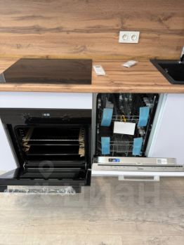 - Полностью оснащены всей необходимой мебелью и техникой: комплект мебели, ТВ 50 дюймов, стильная кухня с посудомоечной машиной, духовым шкафом, варочной панелью, холодильником, вытяжкой, стиральной машиной.
