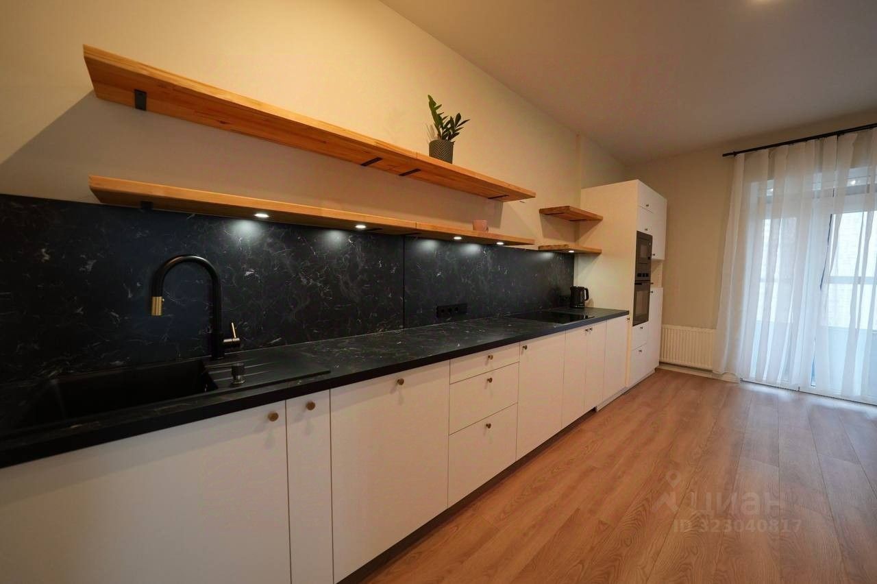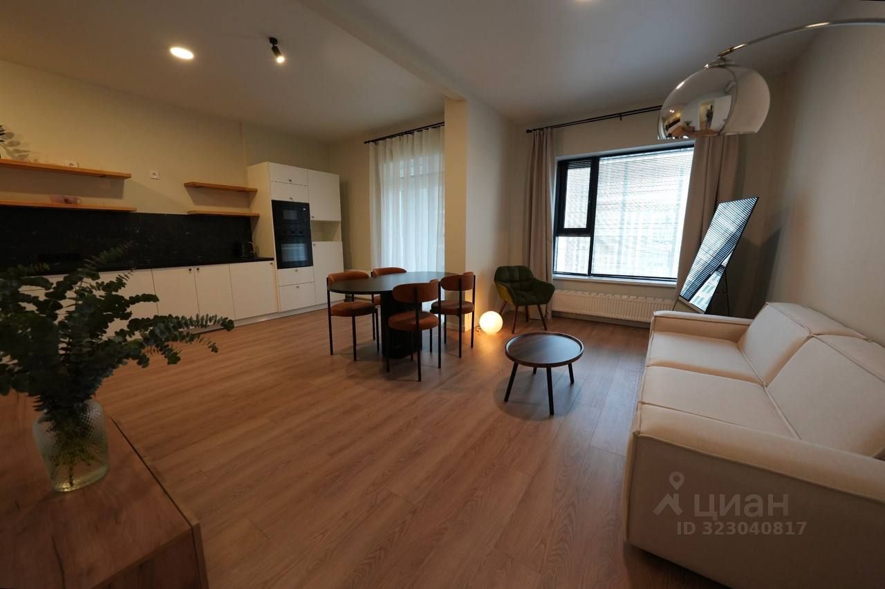Планировка: просторная кухня-гостиная, спальня, комната, которая будет меблирована по запросу арендатора (от детской до кабинета или студии записи роликов), ванная, санузел, балкон.