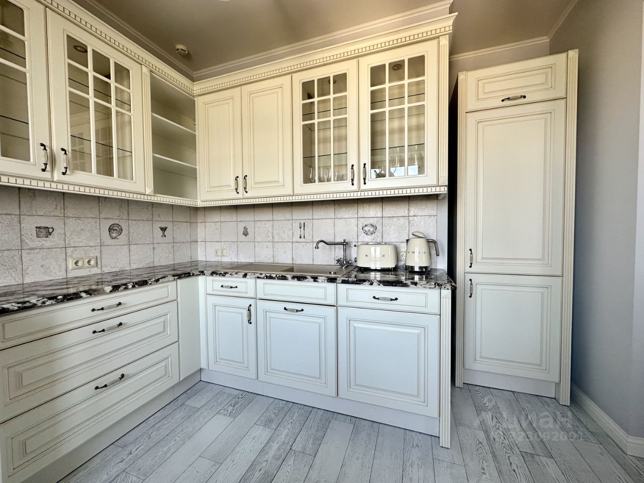 Предлагаем в аренду просторную трехкомнатную квартиру с евроремонтом в современном жилом комплексе. Общая площадь — 89,8 кв. м, жилая — 58 кв. м, кухня — 12 кв. м. Квартира находится на 21 этаже 25-этажного дома, построенного в 2014 году. Высокие потолки — 3 метра, окна выходят на улицу и во двор, что обеспечивает хорошую освещенность и тишину.
