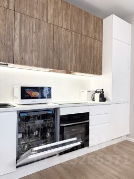 На кухне есть всё необходимое: плита, духовой шкаф, вытяжка, микроволновая печь, посудомоечная машина, холодильник, стиральная машина и множество различных шкафов для хранения бытовой утвари. Кухонный стол и стулья.