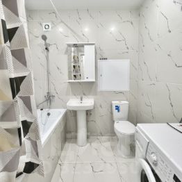 В квартире сделан качественный евроремонт, благодаря чему она выглядит стильно и современно. Просторная кухня оборудована всей необходимой мебелью и техникой, включая холодильник и стиральную машину. В комнате есть мебель, а также установлен телевизор. Санузел совмещённый с ванной, что удобно для повседневного использования. Из окон открывается вид как на улицу, так и во двор, а на балконе можно приятно провести время на свежем воздухе.
