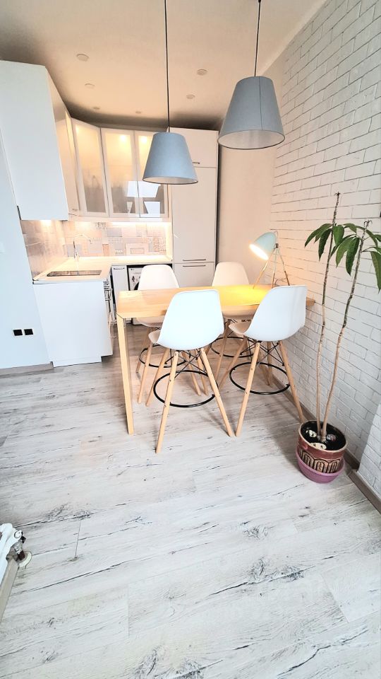 Сдаётся тёплая однокомнатная квартира с дизайнерским ремонтом. Общая площадь — 34.7 кв. м, из них 20 кв. м — жилая. Кухня занимает 7 кв. м, где вы найдете всю необходимую мебель и технику. Квартира расположена на последнем, восьмом этаже монолитного дома 2017 года постройки. Высота потолков составляет 2.8 метра, что добавляет пространства и света в интерьер.