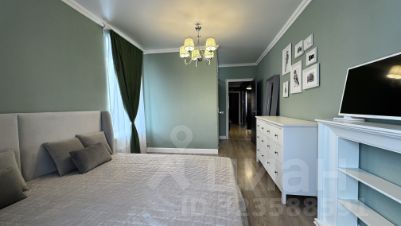 Большая спальня с гардеробной - 18,3 кв.м, двуспальная кровать, комод и телевизор, всё предусмотрено для спокойного отдыха.